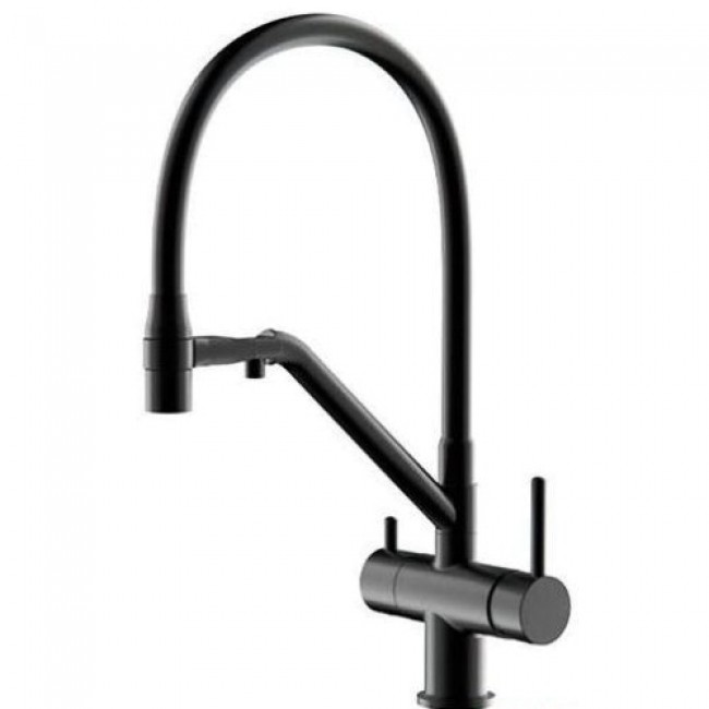 Комбинированные смесители – более современное и универсальное решение. Так называемый смеситель «2 в 1» рассчитан на подачу и водопроводной, и питьевой воды. Фактически подача происходит из одного излива, но из разных трубок. Для включения подачи очищенной воды на смесителе предусмотрен отдельный вентиль или рычаг.