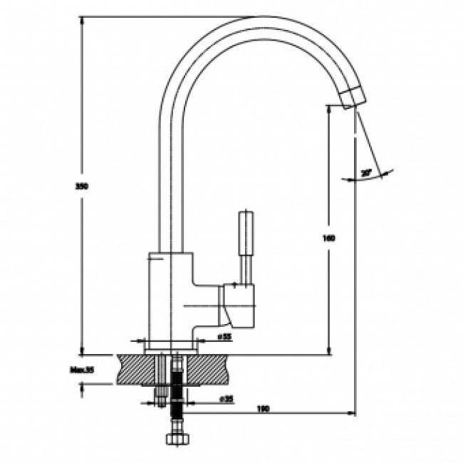 | Высота излива, мм | 190 |
