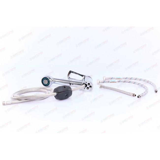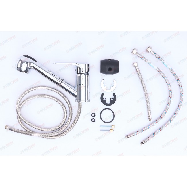 Количество в коробке: 10шт. Производитель использовал силумин для изготовления корпуса. Этот сплав устойчив к коррозии и механическим повреждениям, которые часто образовываются в виде протечек или микротрещен, спустя некоторое время эксплуатации. Силуминовый картриджный смеситель для кухни с вытяжным шлангом и лейкой, комплектуется гибкой подводкой 45 см, крепление шпилька. Смеситель предназначен для встроенного монтажа на одно отверстие. Принцип смешивания воды — однорычажный.