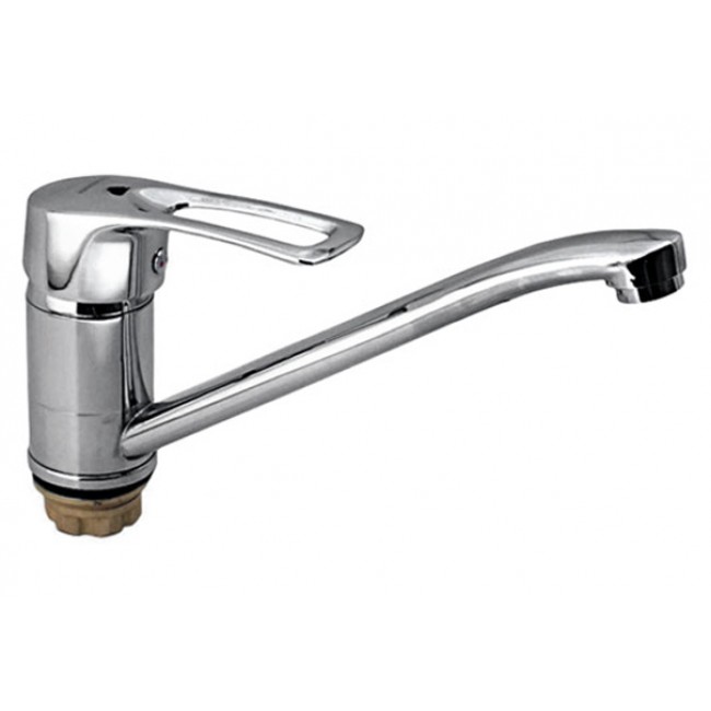 Количество в коробке: 12шт. Смеситель для кухни с поворотным изливом, предназначен для использования в бытовых или общественных помещениях для пуска, смешивания, регулирования температуры и закрытия водного потока на его выходе из системы водоснабжения. Материал корпуса - силумин. Имеется поворотный излив, аэратор.