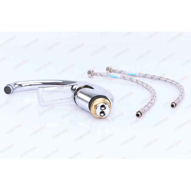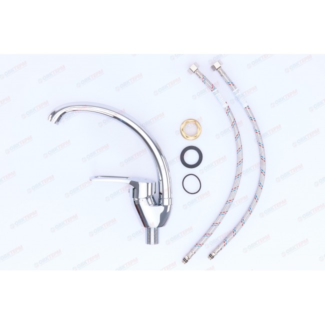 Количество в коробке: 10шт. Картриджный смеситель для кухни с высоким поворотным носом, комплектуется гибкой подводкой 45 см, крепление гайка. Смеситель предназначен для встроенного монтажа на одно отверстие. Принцип смешивания воды — однорычажный.