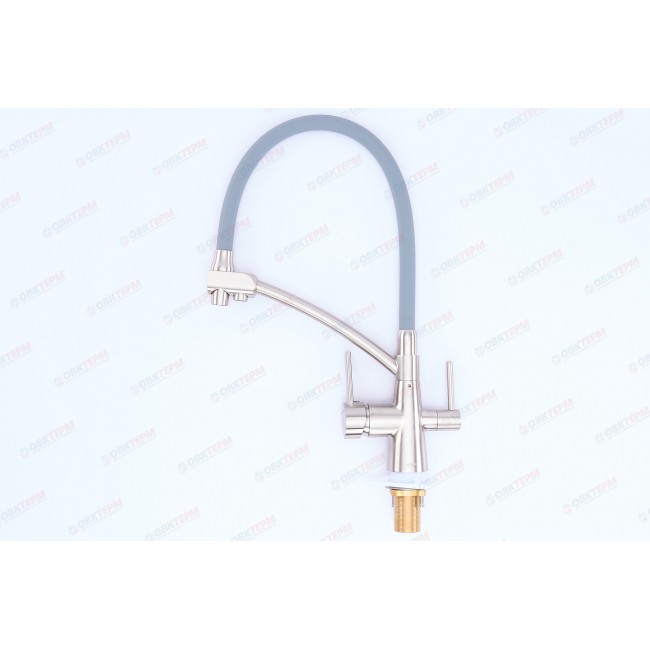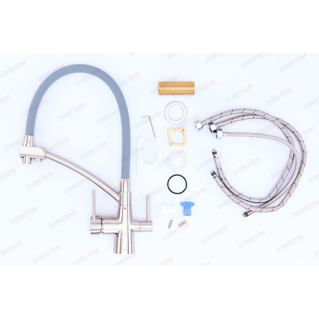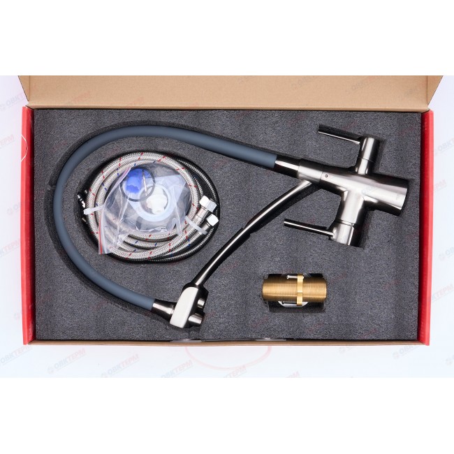 Смеситель для кухни KB-72003-02 с выходом для питьевой воды нерж+силиконовый излив серый Koer