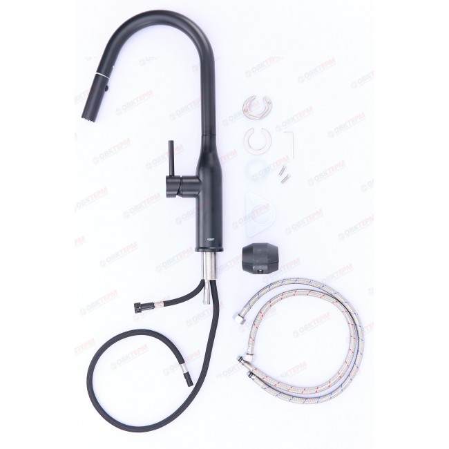 Смеситель для кухни KI-70004-05 из нержавеющей стали SUS304 с выдвижным изливом черный Koer