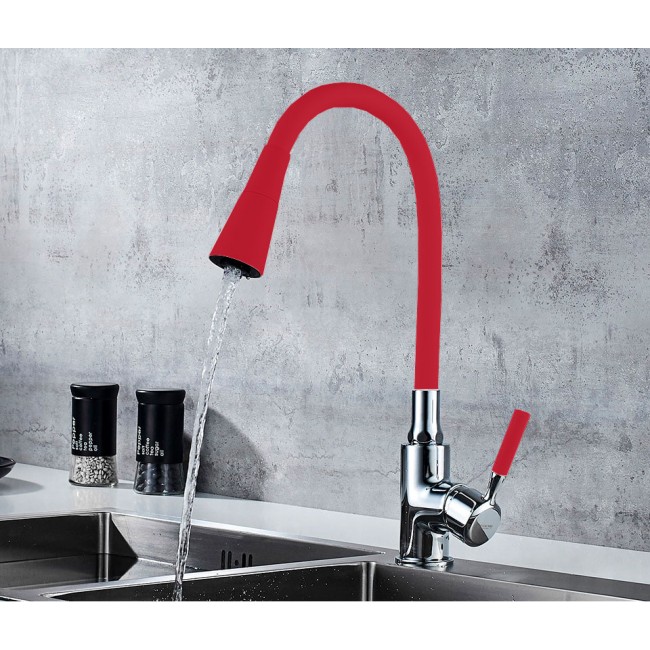 Смеситель для кухни LR4199-1 c силиконовым изливом красный+хром Zerix