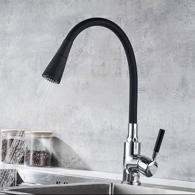 Смеситель для кухни LR4199-2 c силиконовым изливом черный+хром Zerix