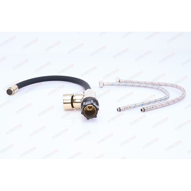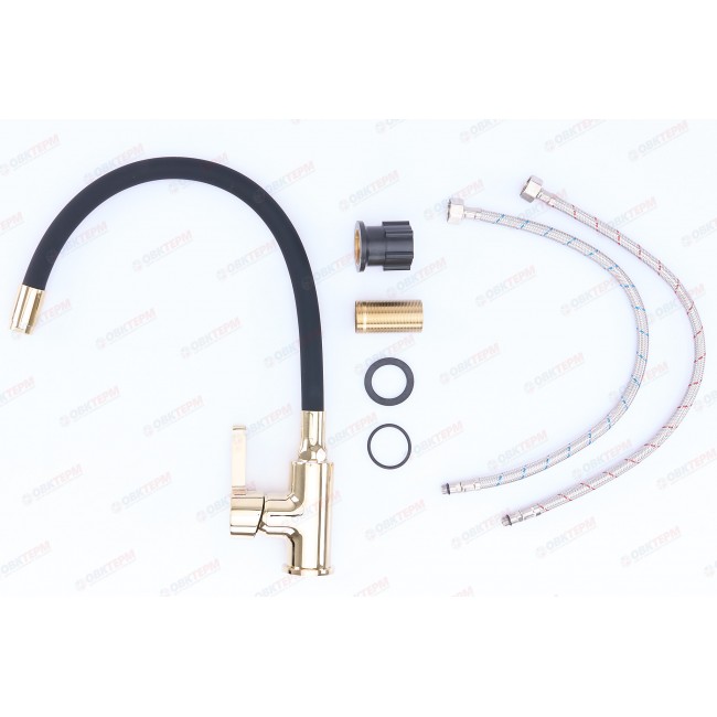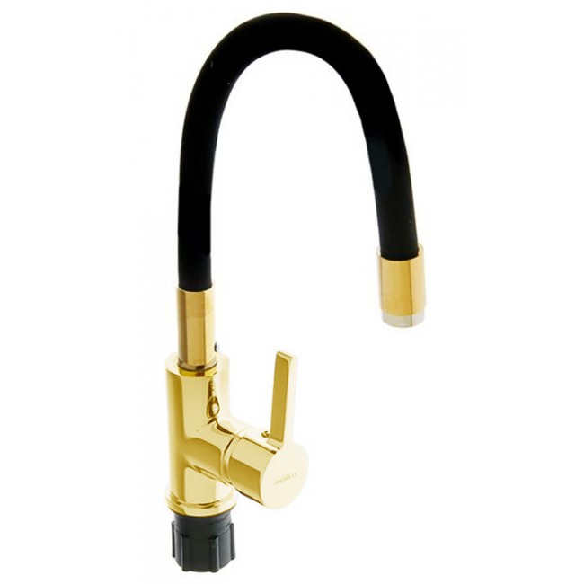 Смеситель для кухни LR4898G-10 c силиконовым изливом черный+золото Zerix