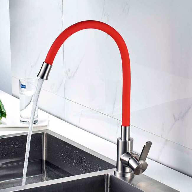 Смеситель для кухни LR74004-1 с силиконовым изливом Ø35 красный Zerix