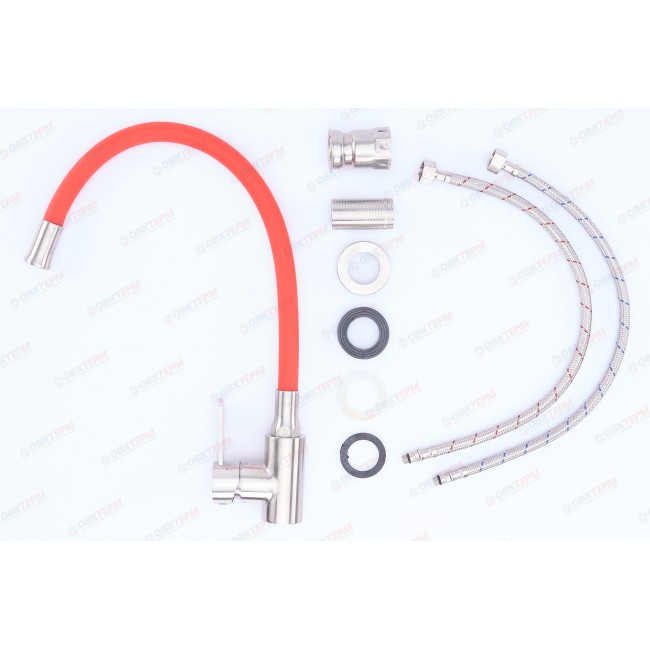 Количество в коробке: 10шт. Смеситель для кухни Zerix изготовлен из высококачественных материалов, которые не подвержены коррозии, корпус устойчив к ударам и появлению трещин. Удобное управление смесителем, благодаря которому можно отрегулировать температуру и напор холодной и горячей воды. Смеситель выполнен в современном дизайне и прекрасно впишется в Ваш интерьер. Особенность смесителя - гибкий силиконовый излив. Запорный элемент - керамический картридж 35 мм. Подключается к трубопроводу двумя гибкими подводками, которые идут в комплекте вместе с крепежным элементом, аэратором и резиновыми прокладками.