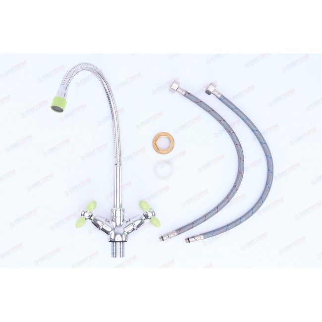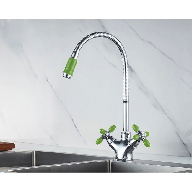 Смеситель для кухни LR84310G с гибким изливом зеленый Zerix