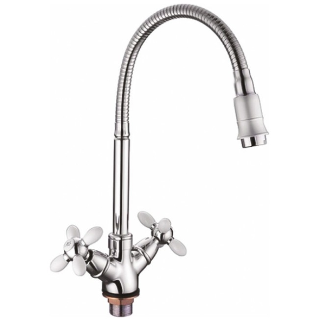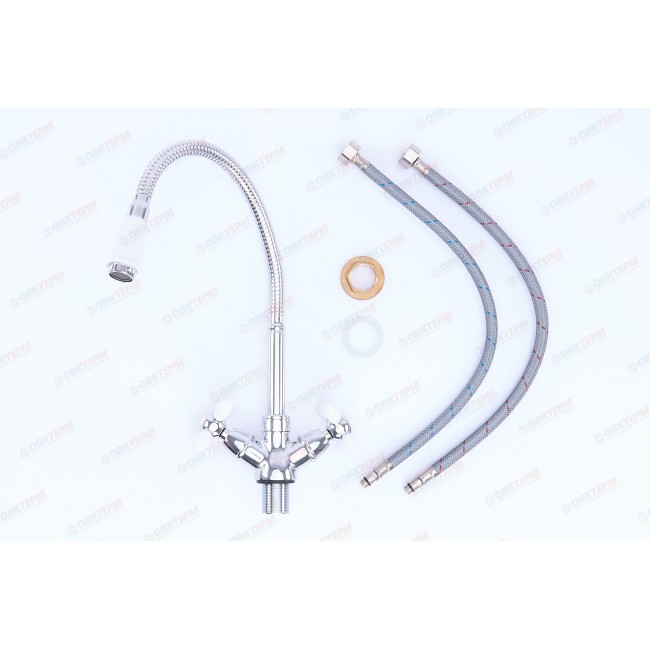 Количество в коробке: 10шт. Смеситель для кухни Zerix отличается максимально удобным функционалом. Он оборудован гибким вращающимся изливом и двухвентильным управлением - керамическими кранами-буксами. Излив и вентили украшены силиконовыми вставками. Корпус изделия имеет хромированное покрытие, которое обеспечивает защиту от царапин и коррозии.