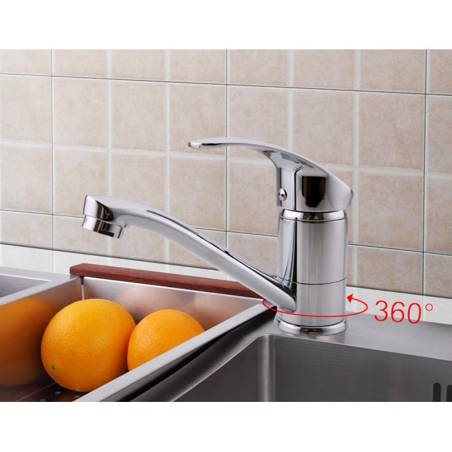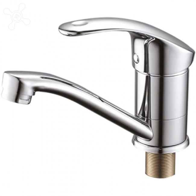 Количество в коробке: 10шт. Этот смеситель для кухни сделан из высококачественного материала латунь, сверху покрытого устойчивым к внешним повреждениям покрытием цвета хром. Компактность прибора делает его удобным в использовании. Короткий излив имеет длину 25 см, Оснащен поворотным рычагом, функции которого регулировать поток и температуру воды. Монтируется врезным способом и крепится с помощью крепежа типа "гайка". Для смешивания воды используется испанский картридж 40 мм. За счет использования качественных материалов и сборки, прибор имеет большой срок эксплуатации, надежен и прочен.