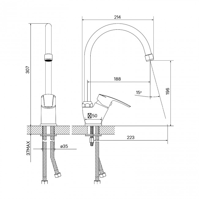 | Тип подвода воды | Гибкий |