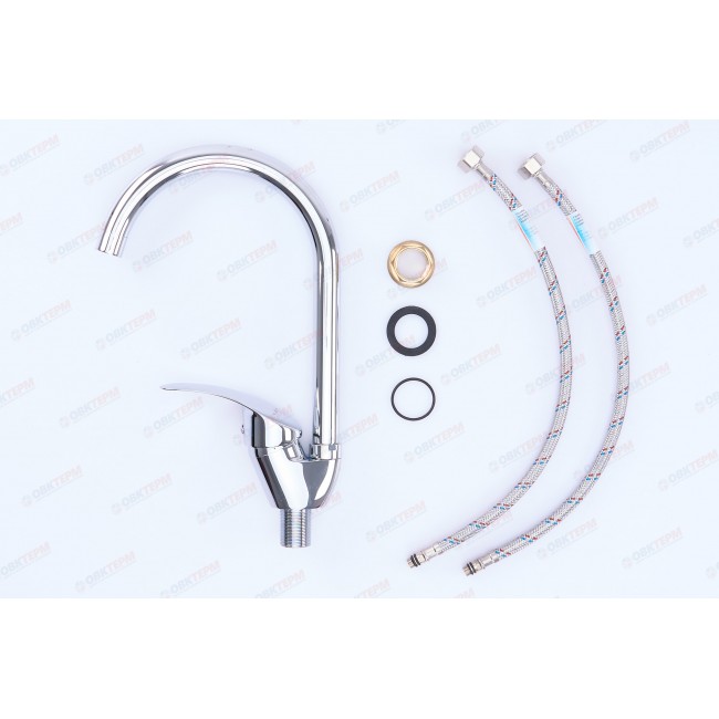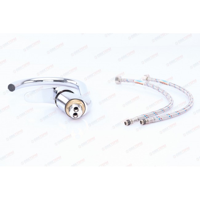 Количество в коробке: 10шт. Однорычажный смеситель сделан из прочного металла - латунь. В качестве механизма смешивания воды, в данной модели использовали надежный керамический картридж 40 мм. Прибор оснащен высоким,изогнутым поворотным изливом, располагающемся на высоте 20,5 см. В качестве управляющего элемента напором воды и её температурой, в смесителе используется рычаг, с помощью которого можно быстро отрегулировать необходимые параметры. Монтаж происходит с помощью закрепления прибора, через отверстие, специальной гайкой.
