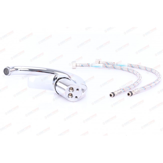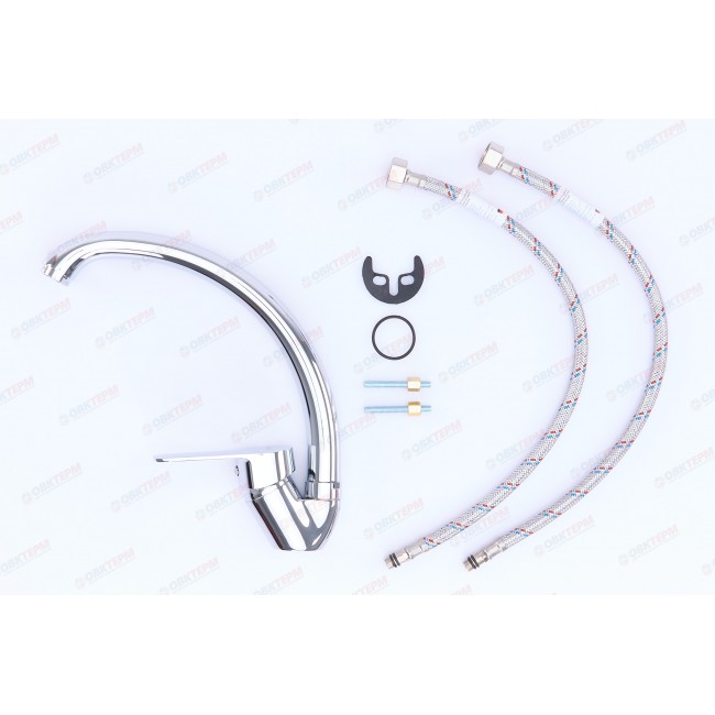 Количество в коробке: 10шт. Производитель использовал силумин для изготовления корпуса. Этот сплав устойчив к коррозии и механическим повреждениям, которые часто образовываются в виде протечек или микротрещен, спустя некоторое время эксплуатации. Силуминовый картриджный смеситель для кухни с высоким поворотным носом, комплектуется гибкой подводкой, крепление шпилька. Смеситель предназначен для встроенного монтажа на одно отверстие. Принцип смешивания воды — однорычажный