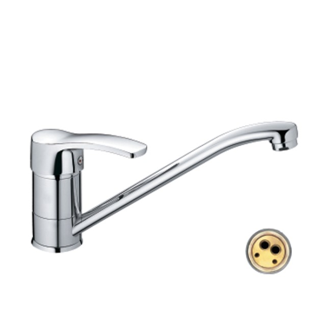 Количество в коробке: 10шт. Смеситель для кухни однорычажный - сантехнический прибор, предназначенный для регулирования и смешивания горячей и холодной воды, что позволяет получить единый поток с максимально комфортной температурой. Данный смеситель предназначен для кухонной раковины и представляет собой корпус с изливом, имеющий управляющий элемент в виде рычага, позволяющего "запоминать" температуру воды, использовавшуюся перед этим.