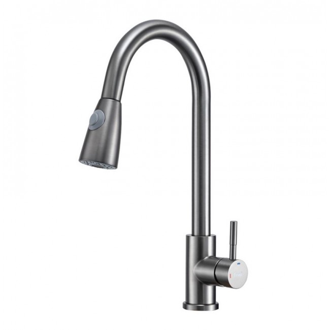 Смеситель для кухни оружейная сталь F60991-9 выдвижной гибкий излив (Ø35, на гайке) FRAP