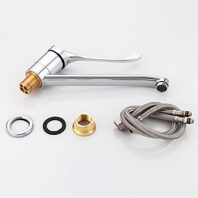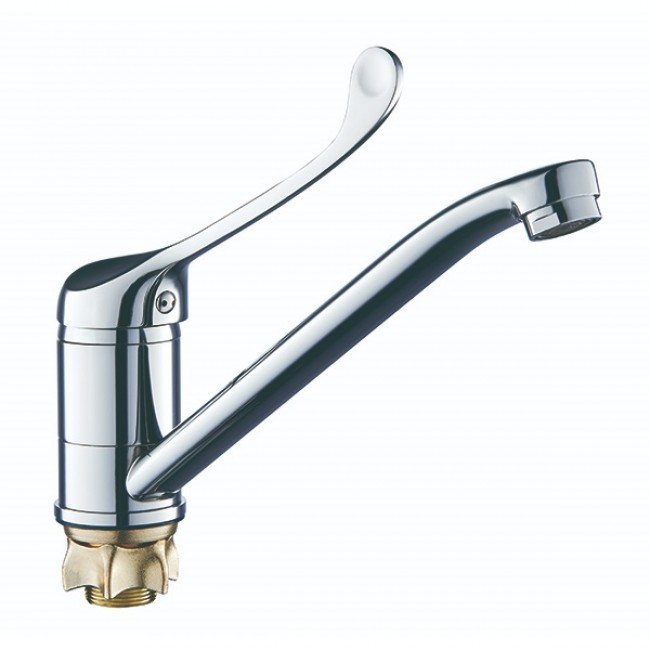 Количество в коробке: 10шт. Одноручковый смеситель для кухни ZERIX PED-A 127 монтируется под одно отверстие (мойка, столешница, подоконник) на гайку. Изготовлен из латуни (сплава цинка, меди и др. металлов) обладающей высокой прочностью, износостойкостью и являющейся одним из лучших материалов для смесителей. Покрытие - зеркальный хром. Длина поворотного излива - 21 см. Запорный элемент - керамический картридж диаметром 40 мм. Подключается к трубопроводу двумя гибкими подводками, которые идут в комплекте вместе с крепежным элементом, аэратором и резиновыми прокладками.