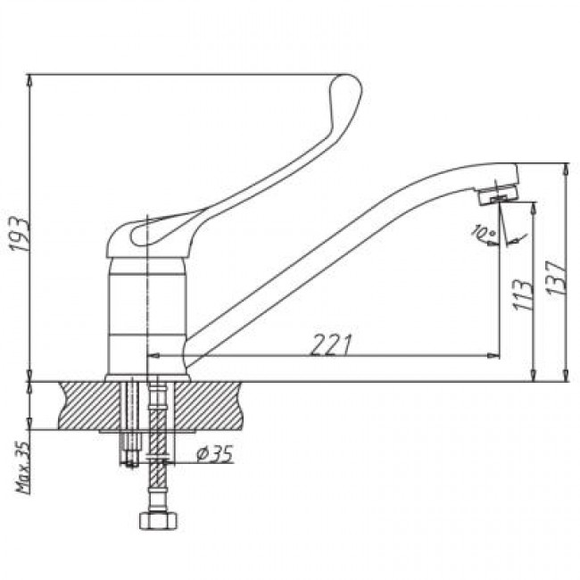 Смеситель для кухни PED-A 127 Ø40 Zerix