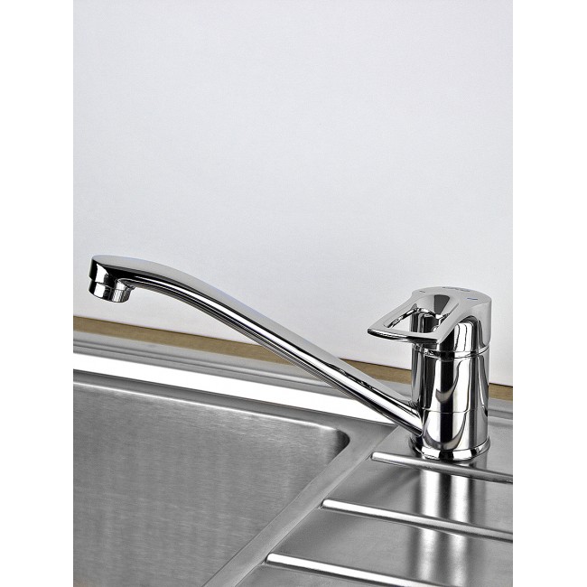 Количество в коробке: 10шт. Одноручковый смеситель для кухни ZERIX PED-A 181 монтируется под одно отверстие (мойка, столешница, подоконник) на гайку. Изготовлен из латуни (сплава цинка, меди и др. металлов) обладающей высокой прочностью, износостойкостью и являющейся одним из лучших материалов для смесителей. Покрытие - зеркальный хром.