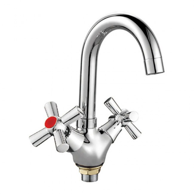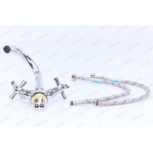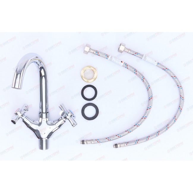 Количество в коробке: 10шт. Латунный кухонный смеситель относится к типу двухвентильных. Регулировка температурой и напором воды, как и её смешивание, осуществляется с помощью двух кран-букс. Обладает устойчивостью к механическим повреждениям, а так же надежен в долгосрочной эксплуатации. Такой смеситель устанавливается на кухонную мойку в одно отверстие. Высокий поворотный гусак, которым оснащено устройство, наиболее удобный вариант для использования на кухне.