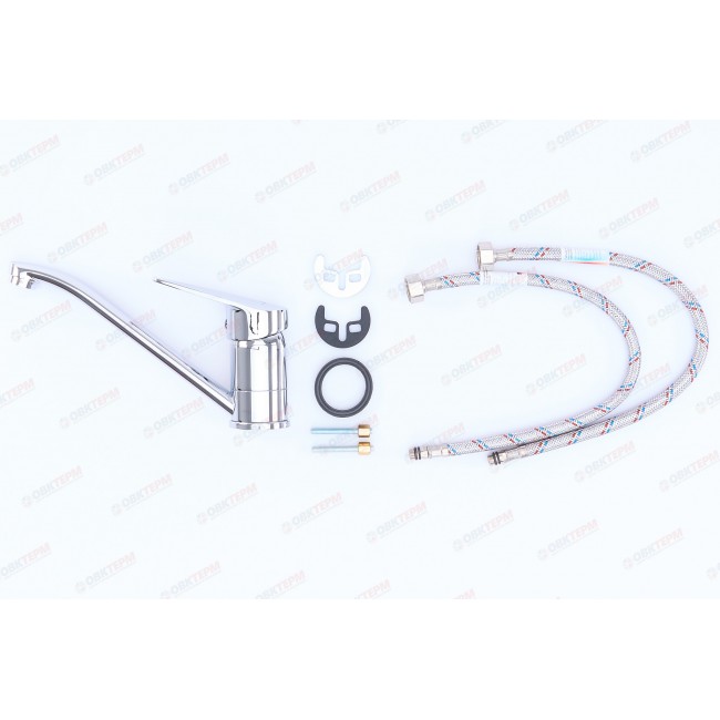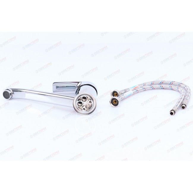 Количество в коробке: 10шт. Производитель использовал силумин для изготовления корпуса. Этот сплав устойчив к коррозии и механическим повреждениям, которые часто образовываются в виде протечек или микротрещен, спустя некоторое время эксплуатации. Силуминовый картриджный смеситель для кухни с длинным поворотным носом, комплектуется гибкой подводкой, крепление шпилька. Смеситель предназначен для встроенного монтажа на одно отверстие. Принцип смешивания воды — однорычажный.