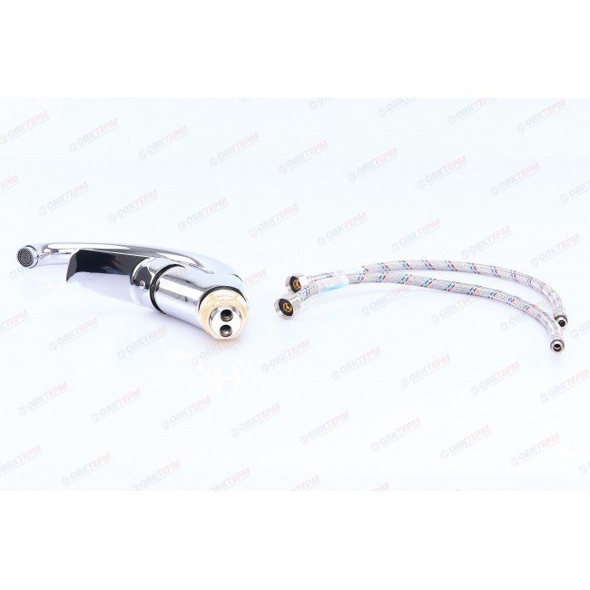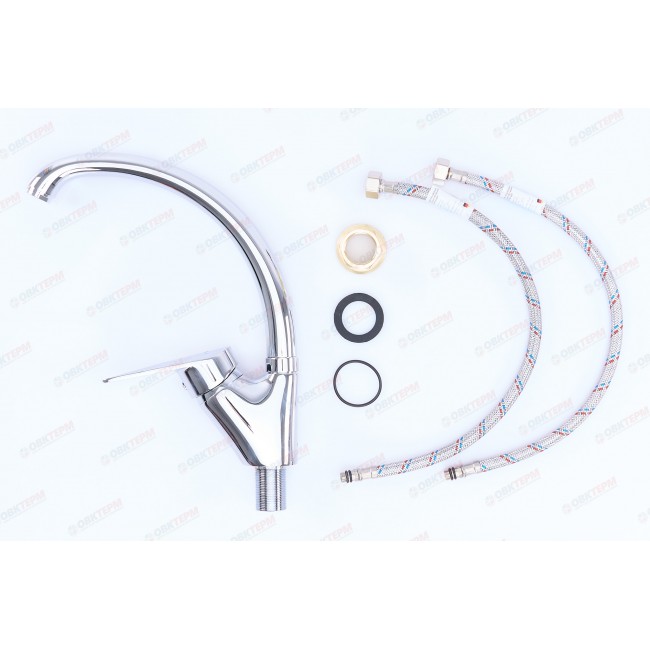 Количество в коробке: 10шт. Производитель использовал силумин для изготовления корпуса. Этот сплав устойчив к коррозии и механическим повреждениям, которые часто образовываются в виде протечек или микротрещен, спустя некоторое время эксплуатации. Силуминовый картриджный смеситель для кухни с высоким поворотным носом, комплектуется гибкой подводкой, крепление гайка. Смеситель предназначен для встроенного монтажа на одно отверстие. Принцип смешивания воды — однорычажный