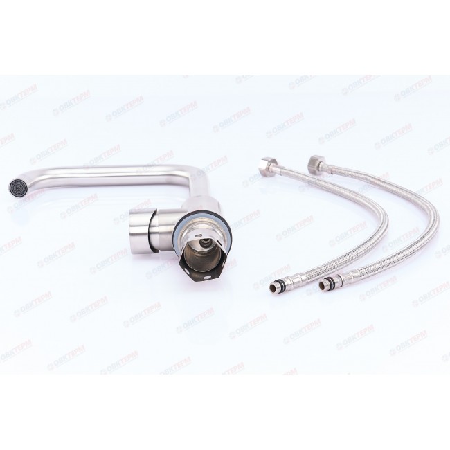 Количество в коробке: 10шт. Смеситель CHAMPION SUS-011-G из нержавеющей стали не содержит свинец, со временем не поддается коррозии, имеет удобный поворотный излив, картридж 35 мм с керамическими пластинами и крепиться гайкой, что очень удобно и надежно. Гайка также изготовлена из нержавейки. Общая высота смесителя 355 мм, вынос излива 200 мм, ширина корпуса 50 мм. Смеситель удобен в использовании, элегантно и стильно смотрится на мойке и впишется абсолютно в любой интерьер кухни.