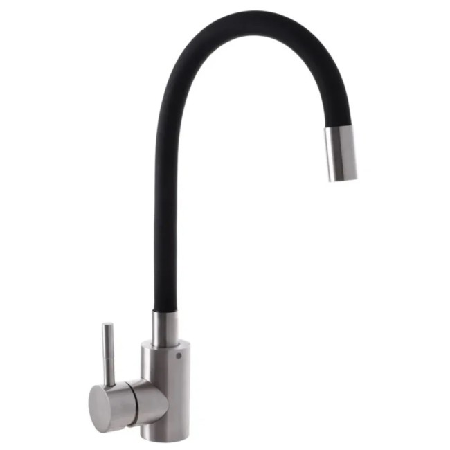 Количество в коробке: 10шт. Однорычажный смеситель для кухни CHAMPION SUS-011 (черный силиконовый излив) монтируется под одно отверстие крепежной гайкой. Материал корпуса - нержавеющая сталь SUS 304 отличается низким содержанием в составе углерода и отсутствием свинца. Она устойчива к коррозии и воздействию химических веществ. Особенность смесителя - черный гибкий силиконовый излив. Запорный элемент - заменяемый керамический картридж. Подключается к трубопроводу двумя гибкими подводками, которые идут в комплекте вместе с крепежным элементом и резиновыми прокладками.