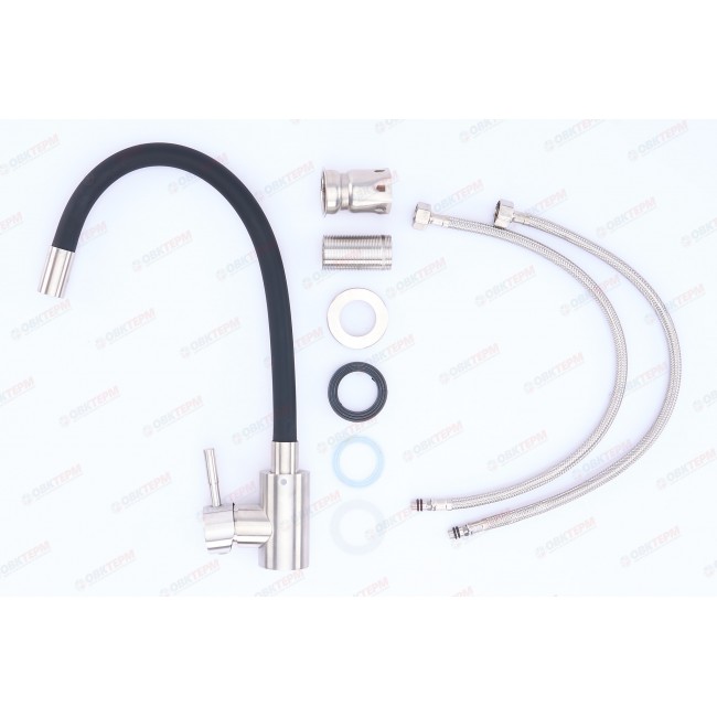 Количество в коробке: 10шт. Однорычажный смеситель для кухни CHAMPION SUS-011 (черный силиконовый излив) монтируется под одно отверстие крепежной гайкой. Материал корпуса - нержавеющая сталь SUS 304 отличается низким содержанием в составе углерода и отсутствием свинца. Она устойчива к коррозии и воздействию химических веществ. Особенность смесителя - черный гибкий силиконовый излив. Запорный элемент - заменяемый керамический картридж. Подключается к трубопроводу двумя гибкими подводками, которые идут в комплекте вместе с крепежным элементом и резиновыми прокладками.