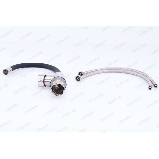 Смеситель для кухни SUS-011 с силиконовым изливом из нержавеющей стали черный Reflector Champion