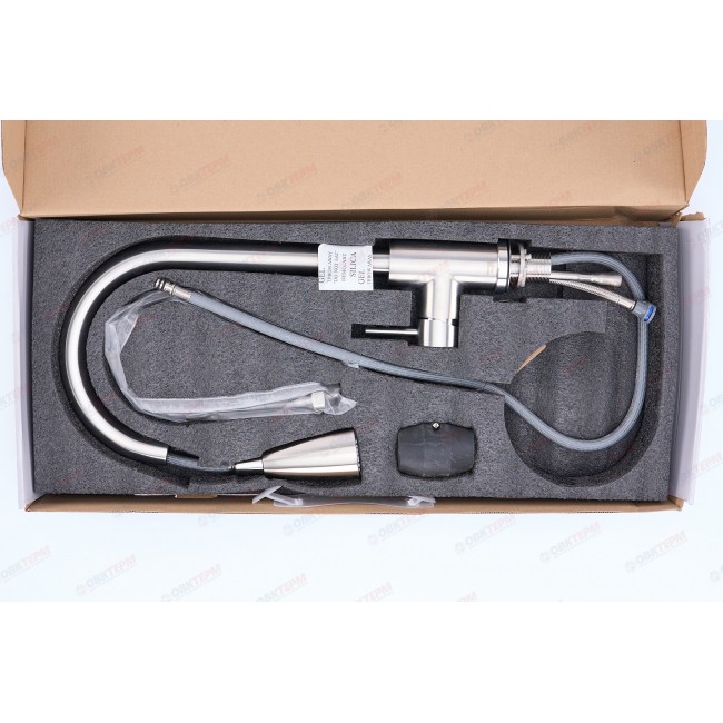 Количество в коробке: 16шт. Одноручковый смеситель для кухни MIXXUS SUS-014-B с выдвижной лейкой монтируется под одно отверстие: мойка, столешница, подоконник. Материал корпуса - нержавеющая сталь SUS 304 отличается низким содержанием в составе углерода и отсутствием свинца. Она устойчива к коррозии и воздействию химических веществ.