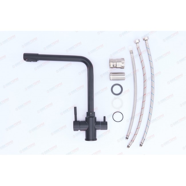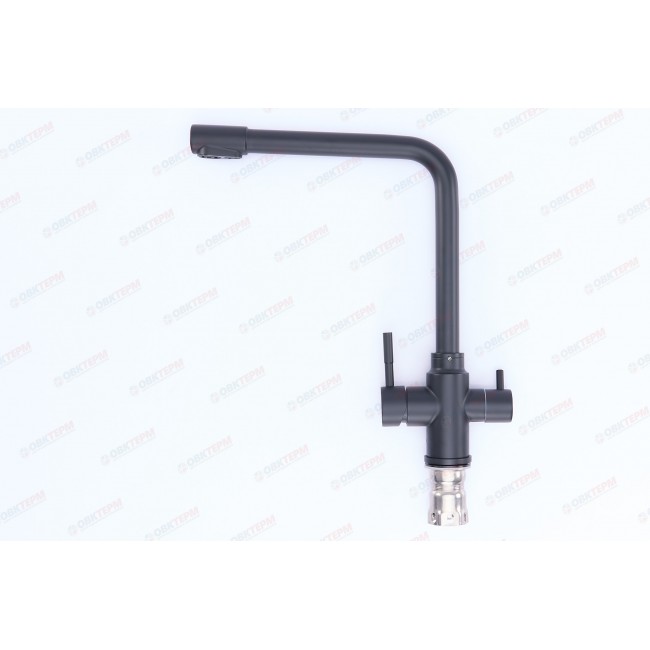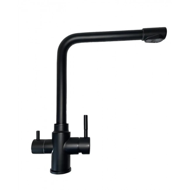 Количество в коробке: 20шт. Смеситель для питьевой воды двухрычажный - сантехнический прибор, предназначенный для регулирования и смешивания горячей и холодной воды, что позволяет получить единый поток с максимально комфортной температурой. Данный смеситель предназначен для кухонной раковины и представляет собой корпус с изливом, имеющий два управляющих элемента в виде рычагов, один из которых позволяет "запоминать" температуру воды, использовавшуюся перед этим, а второй контролировать поток фильтрованной питьевой воды. В комплекте идет: смеситель, крепление, гибкая подводка.