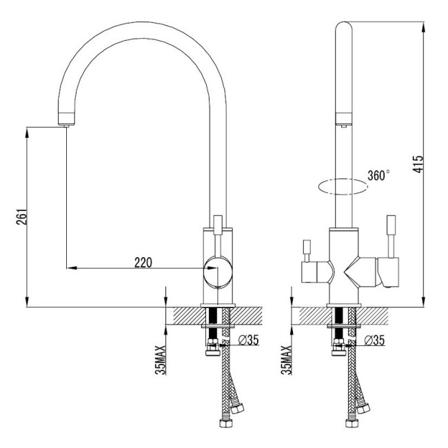 | Комплектация | Смеситель; Подводка; Крепежный комплект; Паспорт. |