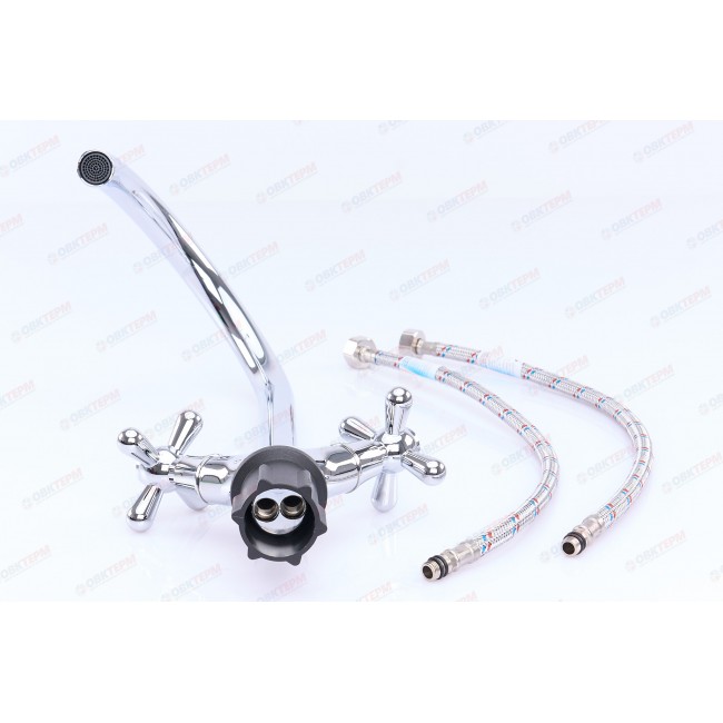 Количество в коробке: 10шт. Высокий кухонный смеситель TEOREMA 275 практичен и удобен в использовании на мойке. Сделанный из сплава алюминия и кремния, прибор имеет хорошую прочность и надежность в эксплуатации. В качестве управляющих элементов выступают два поворотных вентиля, отвечающих за силу напора и температуру воды. Смешивание происходит с помощью кран букс. Простая установка смесителя на прибор в одно отверстие, делает монтаж быстрым а соединение гайкой надежным.
