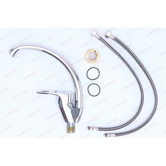 Количество в коробке: 10шт. Одноручковый смеситель для кухни ZERIX YUB 180 (ZX0102) монтируется под одно отверстие (мойка, столешница, подоконник) на гайку. Материал корпуса - стойкий к коррозии силумин (сплав алюминия с кремнием). Покрытие - зеркальный хром. Длина поворотного излива - 22 см. Запорный элемент - керамический картридж диаметром 40 мм. Подключается к трубопроводу двумя гибкими подводками, которые идут в комплекте вместе с крепежным элементом, аэратором и резиновыми прокладками.