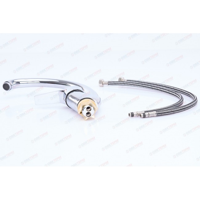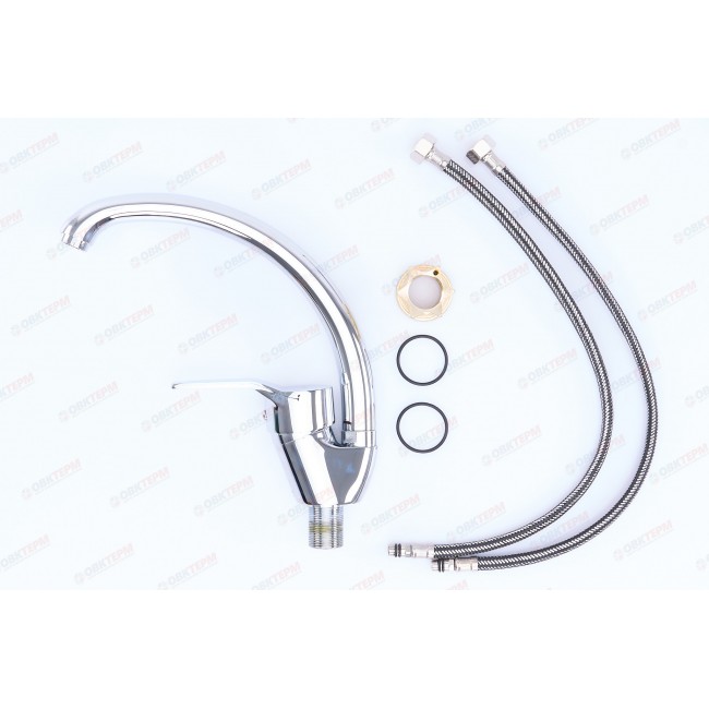 Количество в коробке: 10шт. Одноручковый смеситель для кухни ZERIX YUB 183 (ZX0105) монтируется под одно отверстие (мойка, столешница, подоконник) на гайку. Материал корпуса - стойкий к коррозии силумин (сплав алюминия с кремнием). Покрытие - зеркальный хром. Длина поворотного излива - 22 см. Запорный элемент - керамический картридж диаметром 40 мм. Подключается к трубопроводу двумя гибкими подводками, которые идут в комплекте вместе с крепежным элементом, аэратором и резиновыми прокладками.