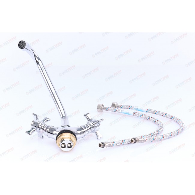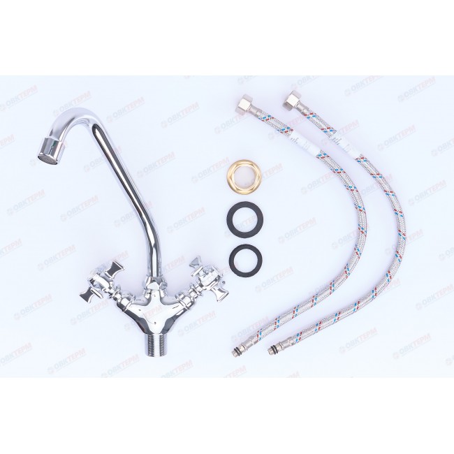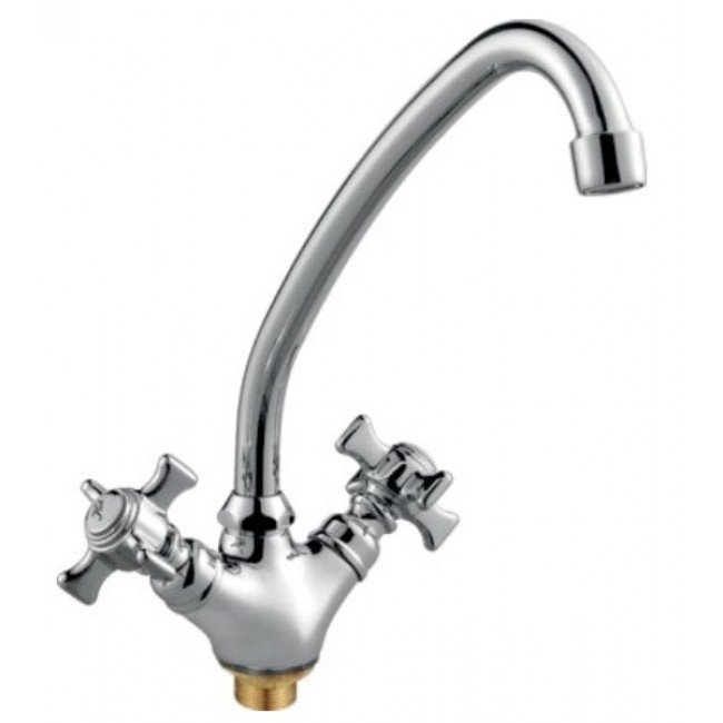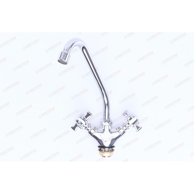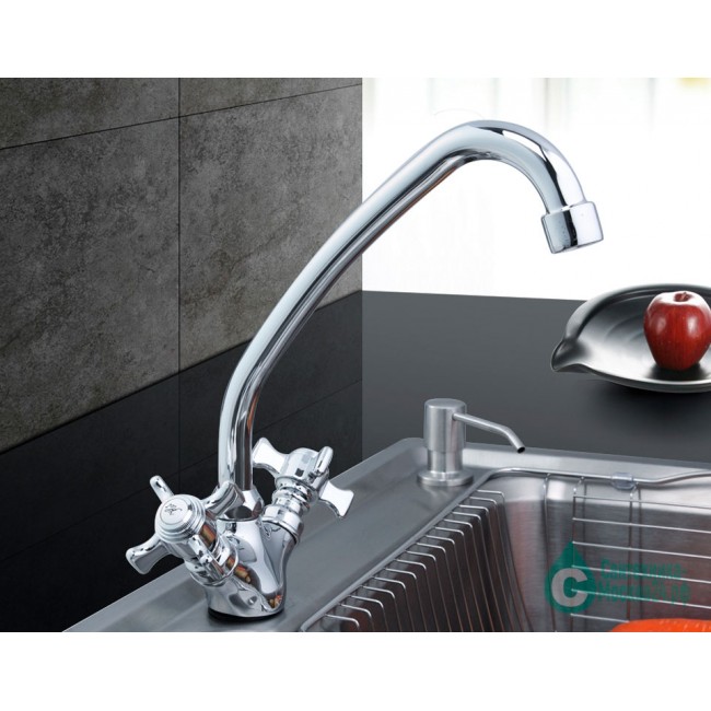 Количество в коробке: 10шт. Корпус ZEUS 271 представляет собой высокий поворотный излив с двумя управляющими вентилями. За смешивание воды отвечают кран-буксы с резиновыми прокладками. В качестве материала производитель выбрал силумин. Верхний шар прибора имеет хромированное покрытие. Монтируется на мойку в одно отверстие и крепится с помощью гайки. Что бы настроить нужный напор и температуру воды, нужно прокрутить вентили отвечающие за подачу горячей и холодной воды.