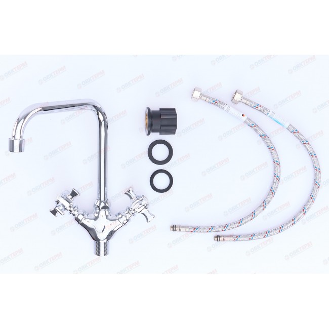 Количество в коробке: 10шт. Высокий кухонный смеситель ZEUS 276 практичен и удобен в использовании на мойке. Сделанный из сплава алюминия и кремния, прибор имеет хорошую прочность и надежность в эксплуатации. В качестве управляющих элементов выступают два поворотных вентиля, отвечающих за силу напора и температуру воды. Смешивание происходит с помощью кран букс.