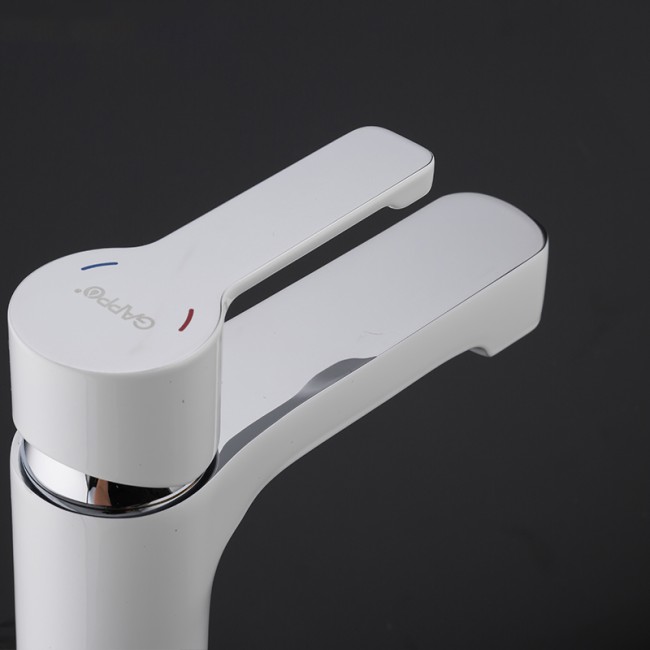 Смеситель для раковины Gappo G1002-8, данный прибор оснащен одной рукоятью чтобы регулировать напор. Аэратор гарантирует равномерный поток воды, с помощью того, что металлическая сеточка будет рассеивать напор, вода становится мягче.