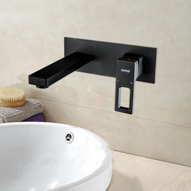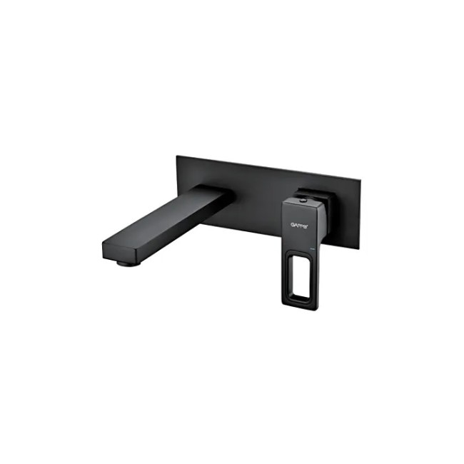 Смеситель для умывальника Gappo G1017-16 устанавливается в комплекте с раковинами без отверстия под смеситель. Крепится на стену. Латунный корпус покрыт черной порошковой краской. Украсит любой современный интерьер. Подключается жесткими подводка, которые идут в комплекте. Конструкция литая, гусак неповоротный. Крепится к стене саморезами и дюбелями, все скрывается под накладкой на которой размещена конструкция. Для регулировки напора и температуры воды установлен испанский керамический картридж.