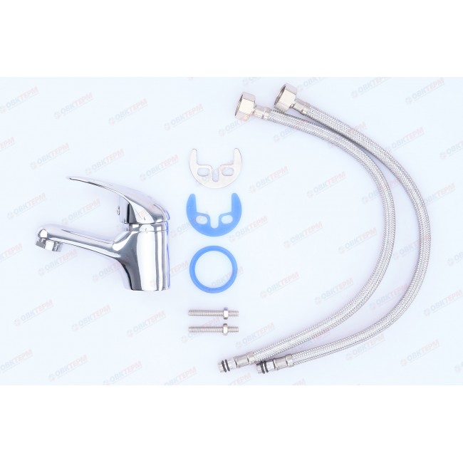 Количество в коробке: 10шт. Смеситель для умывальника представлен в виде однорычажного сантехоборудования, которое имеет плавный ход рукояти регулировки как напора, так и температуры воды. Технической частью являются керамический картридж 35мм. В комплектацию входят крепеж для монтажа и шланги подвода воды. Сверху нанесено хромированное покрытие, которое не требует специального ухода. Стильный, компактный и простой в использовании. Вмонтирован аэратор для создания более мягкой и чистой струи без брызг, а также экономии расхода воды.