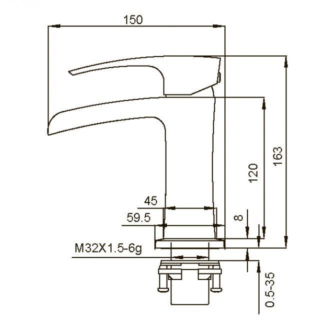 | Длина излива, мм | 150 |