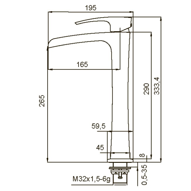 | Высота излива, мм | 265 |