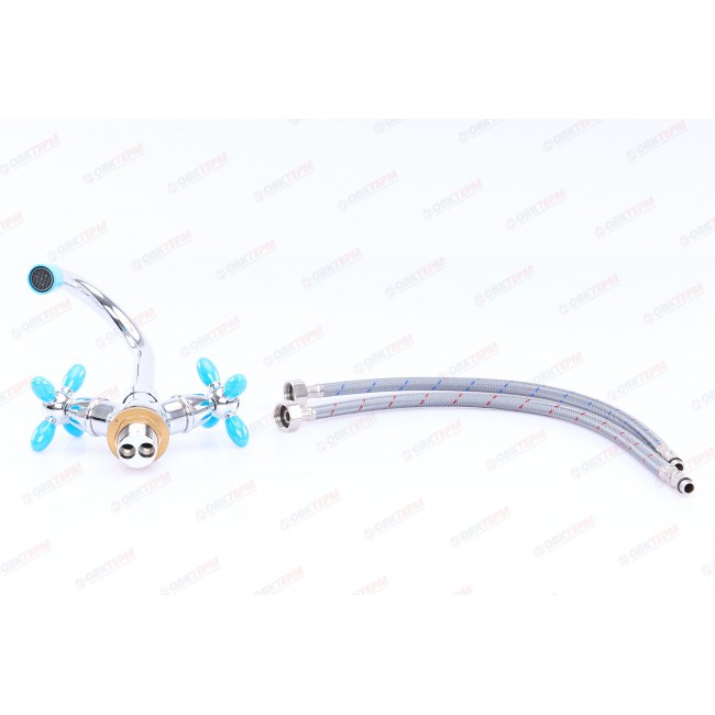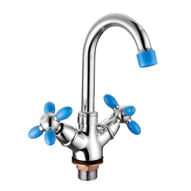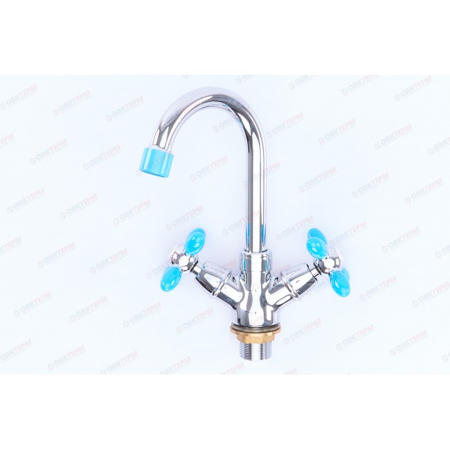 Количество в коробке: 10шт. Смеситель для умывальника двухвентильный - сантехнический прибор, предназначенный для регулирования и смешивания горячей и холодной воды, что позволяет получить единый поток с максимально комфортной температурой. Данный смеситель предназначен для кухонной раковины и представляет собой корпус с изливом, имеющий управляющий элемент в виде двух вентилей, позволяющих отрегулировать поток как холодной, так и горячей воды.