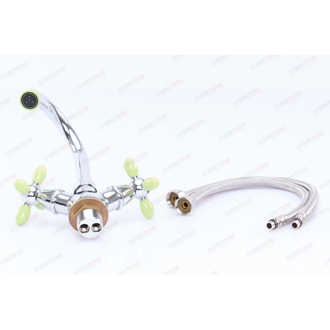 Количество в коробке: 10шт. Смеситель для умывальника двухвентильный - сантехнический прибор, предназначенный для регулирования и смешивания горячей и холодной воды, что позволяет получить единый поток с максимально комфортной температурой. Данный смеситель предназначен для кухонной раковины и представляет собой корпус с изливом, имеющий управляющий элемент в виде двух вентилей, позволяющих отрегулировать поток как холодной, так и горячей воды.