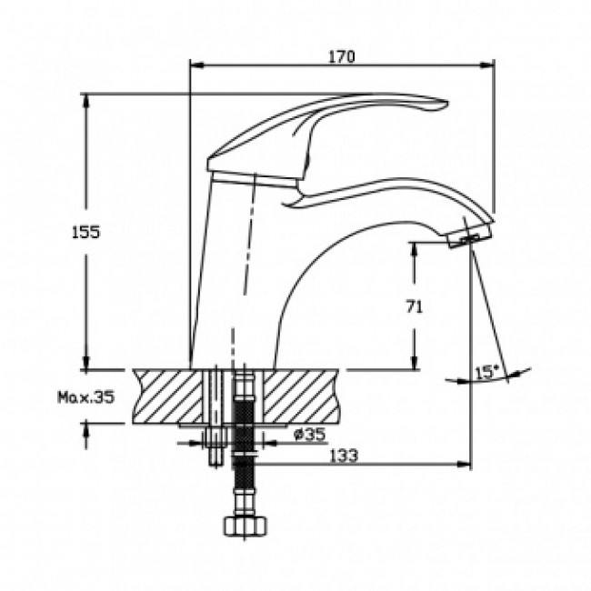 Количество в коробке: 10шт. Латунный однорычажный смеситель MARS 001 предназначен для установки на умывальник в отверстие. Прибор крепится с помощью специальных крепежей типа "шпилька". Корпус покрыт износостойким хромированным покрытием. Литой, неповоротный излив с углом наклона 15 градусов. Для управления напором воды и её температурой установлен поворотный рычаг. В качестве механизма для смешивания воды используется испанский керамический картридж 40 мм. Для подключения воды применяется гибкая подводка.