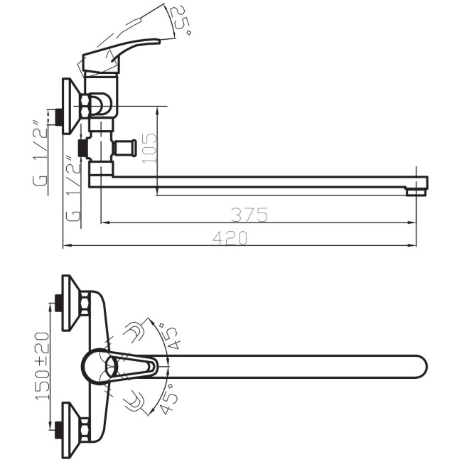 | Комплектация | Смеситель; Держатель лейки; Душевая ручная лейка; Душевой шланг 150 см; Эксцентрики;Паспорт. |
