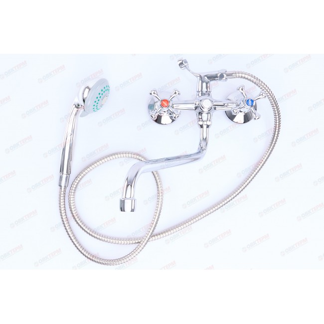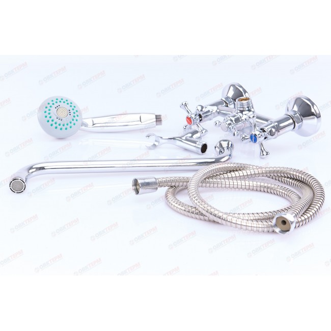 Количество в коробке: 10шт. Смеситель для ванны двухвентильный - сантехнический прибор, предназначенный для регулирования и смешивания горячей и холодной воды, что позволяет получить единый поток с максимально комфортной температурой. Данный смеситель предназначен для ванны и представляет собой корпус с изливом, имеющий управляющий элемент в виде двух вентилей, позволяющих отрегулировать поток как холодной, так и горячей воды. В комплекте идет: смеситель, шланг, лейка, эксцентрики с декоративными элементами.