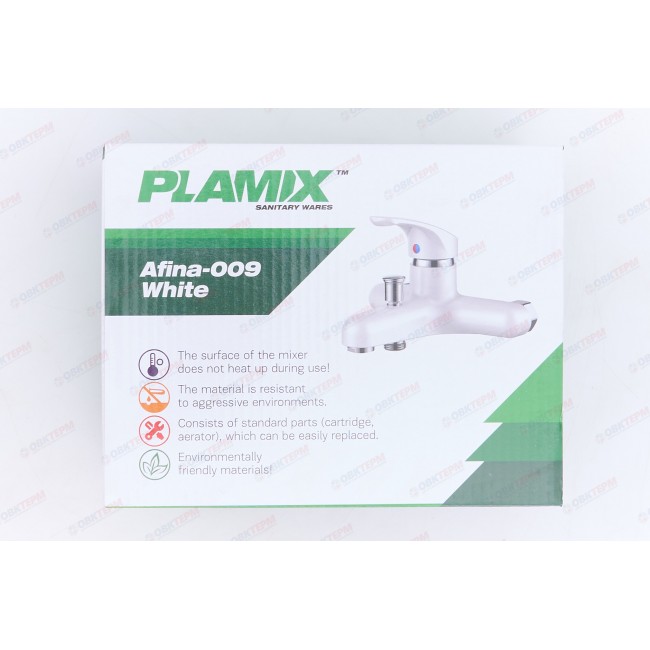 Смеситель для ванны Afina-009 короткий, без шланга и лейки белый Plamix