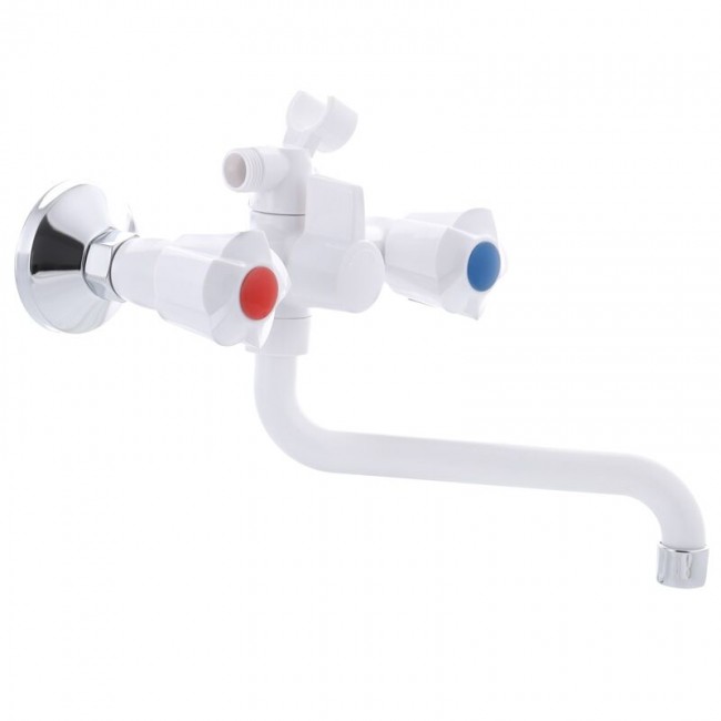 Смеситель для ванны AMA-142 SET белый ручка крест со шлангом и лейкой Plamix